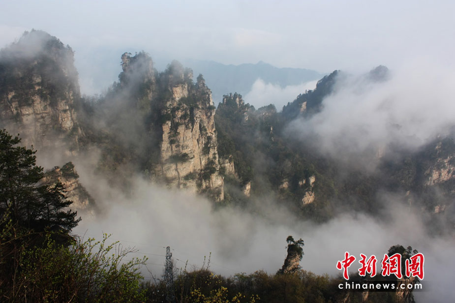 中新網(wǎng)張家界4月8日電(鄧道理 鄧霞)今晨,雨后初晴的湖南張家界天子山景區(qū)出現(xiàn)美麗壯觀的云海奇觀,風(fēng)起云涌之時(shí)砂巖峰林若隱若現(xiàn)、似夢(mèng)似幻,勝過《阿凡達(dá)》“懸浮山”仙境,令海內(nèi)外游客驚喜不已。