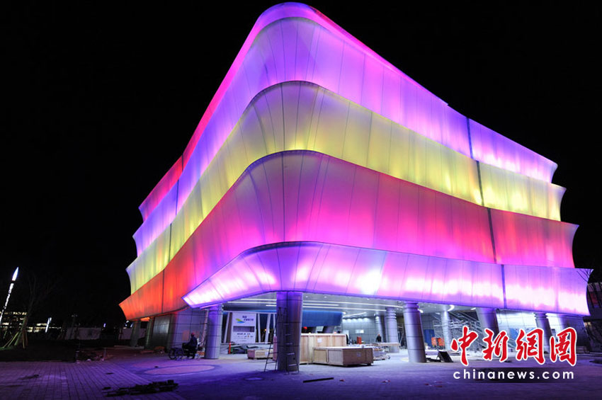 4月8日,上海世博會(huì)園區(qū)各大洲國(guó)家展館的建設(shè)和布展絕大多數(shù)已經(jīng)進(jìn)入尾聲。圖為韓國(guó)企業(yè)聯(lián)合館。梁臻 攝
