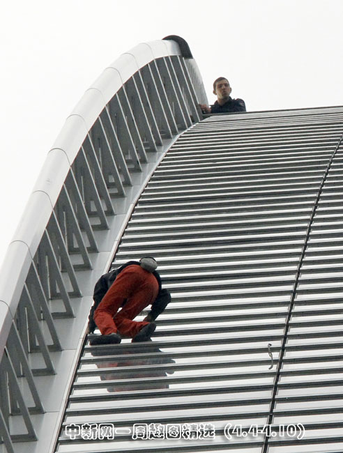 4月7日,巴黎,法國“蜘蛛人”羅伯特當(dāng)日用了大約50分鐘成功攀爬185米高的法國燃?xì)馓K伊士集團(tuán)大樓。圖片來源:中國新聞網(wǎng)>>點擊觀看詳細(xì)內(nèi)容