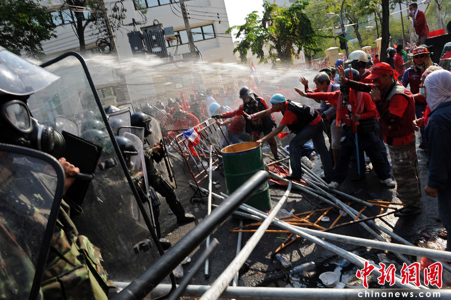 4月10日,泰國軍隊在首都曼谷對支持前總理他信的“紅衫軍”進(jìn)行武力驅(qū)散,雙方爆發(fā)嚴(yán)重沖突,目前已造成18人死亡,數(shù)百人受傷。圖片來源:中國新聞網(wǎng)