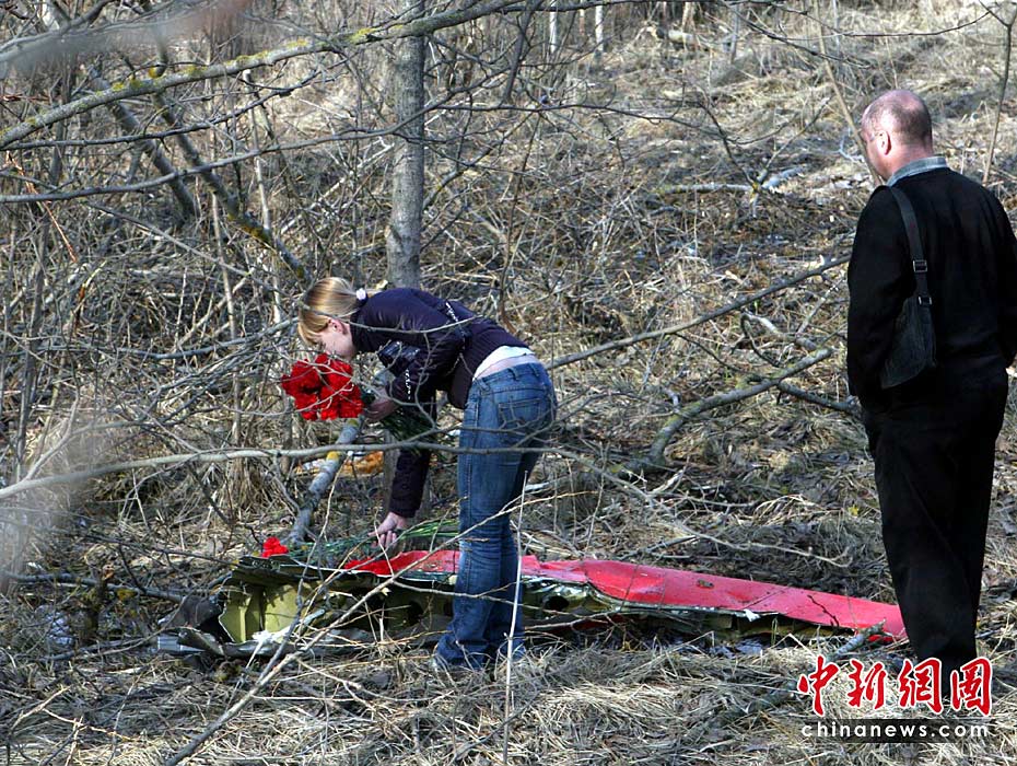 4月11日,波蘭總統(tǒng)卡欽斯基專機在俄羅斯斯摩棱斯克軍用機場墜毀地點附近的道路開通,但是警戒線核心區(qū)仍然關(guān)閉。俄波調(diào)查人員正在現(xiàn)場工作。圖片來源:中國新聞網(wǎng)