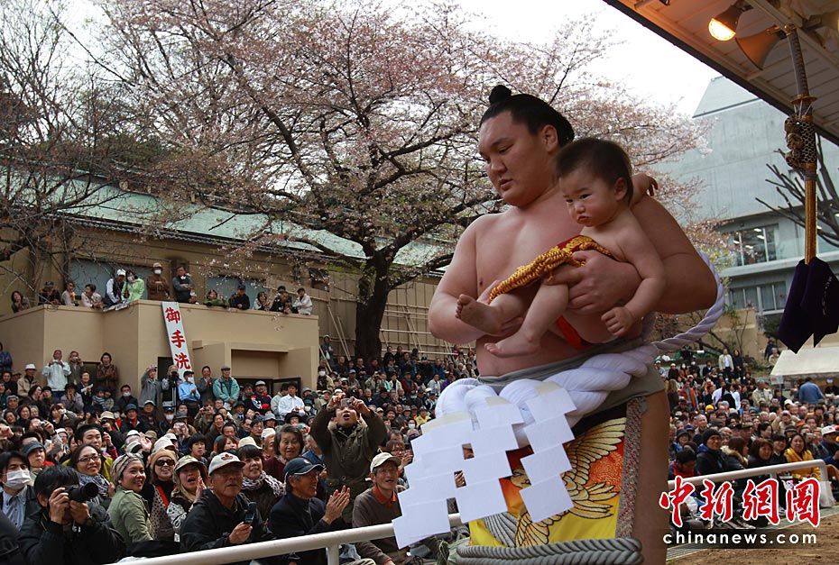 4月9日,來(lái)自世界各地的相撲選手齊聚日本東京靖國(guó)神社內(nèi)的相撲館參加為期一天的日本供奉大相撲比賽。圖片來(lái)源:中國(guó)新聞網(wǎng)