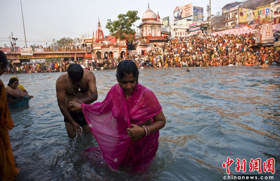 4月13日,印度教傳統(tǒng)節(jié)日“大壺節(jié)”步入尾聲,前來參加盛典的上萬苦行僧赤裸身體涌入恒河,祈求洗清身上的“罪惡”。圖片來源:中國新聞網