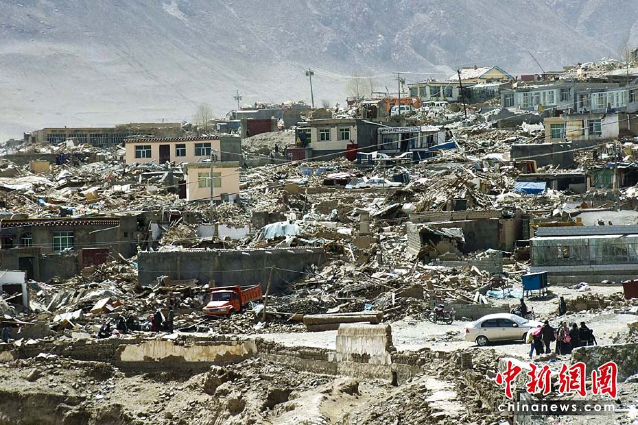 圖為俯瞰受災(zāi)的玉樹縣結(jié)古鎮(zhèn)。中新社發(fā) 張守國 攝