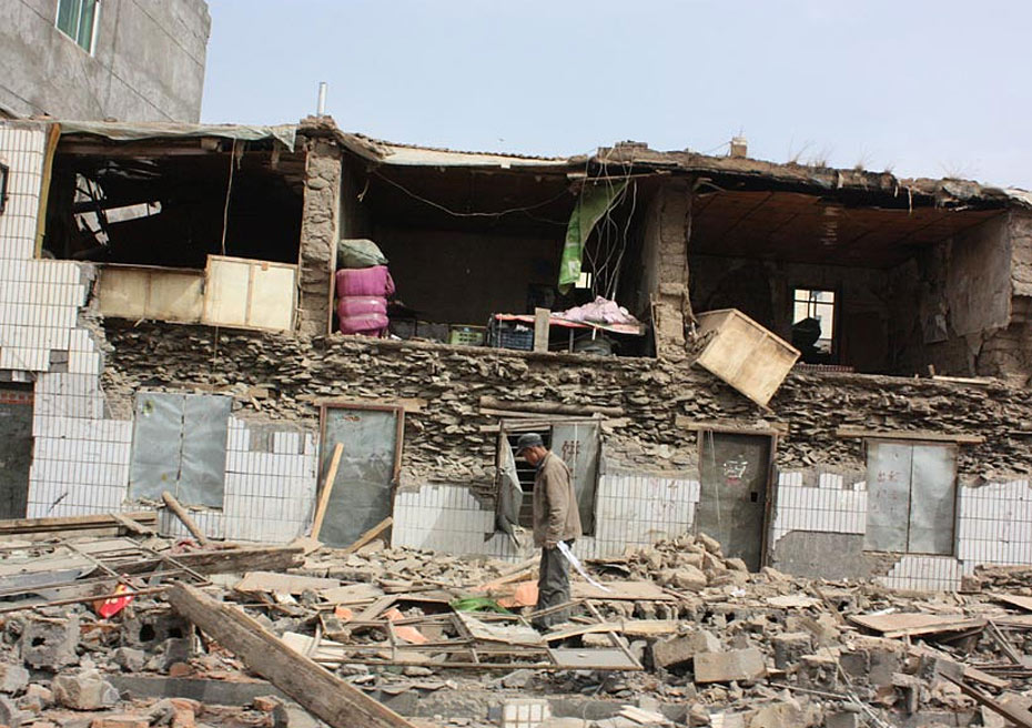 圖為4月14日拍攝的玉樹州結古鎮(zhèn)倒塌的房屋。圖片來源:新華網(wǎng) 吳宏 攝