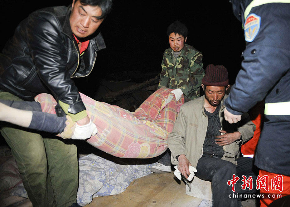 圖為4月15日凌晨1時(shí),玉樹(shù)縣的民眾在中國(guó)國(guó)際救援隊(duì)隊(duì)員的幫助下清理遇難者遺體。中新社發(fā) 廖攀 攝