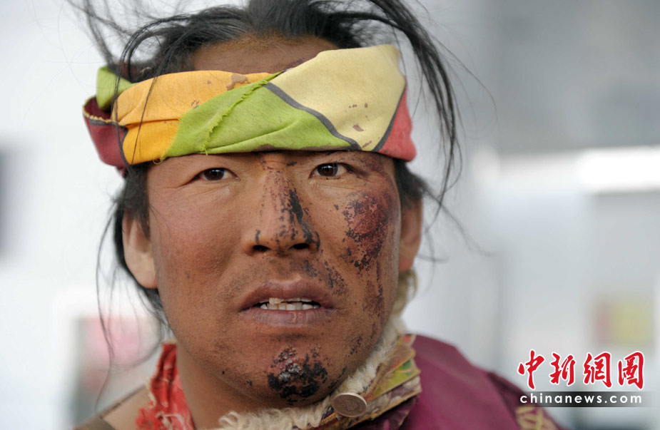 4月15日下午,云南邊防總隊醫(yī)療救援隊剛下飛機立即投入傷員轉(zhuǎn)移工作,官兵們在玉樹機場從救護車上抬下地震傷員,進行轉(zhuǎn)移安置和治療。中新社發(fā) 陳文 攝