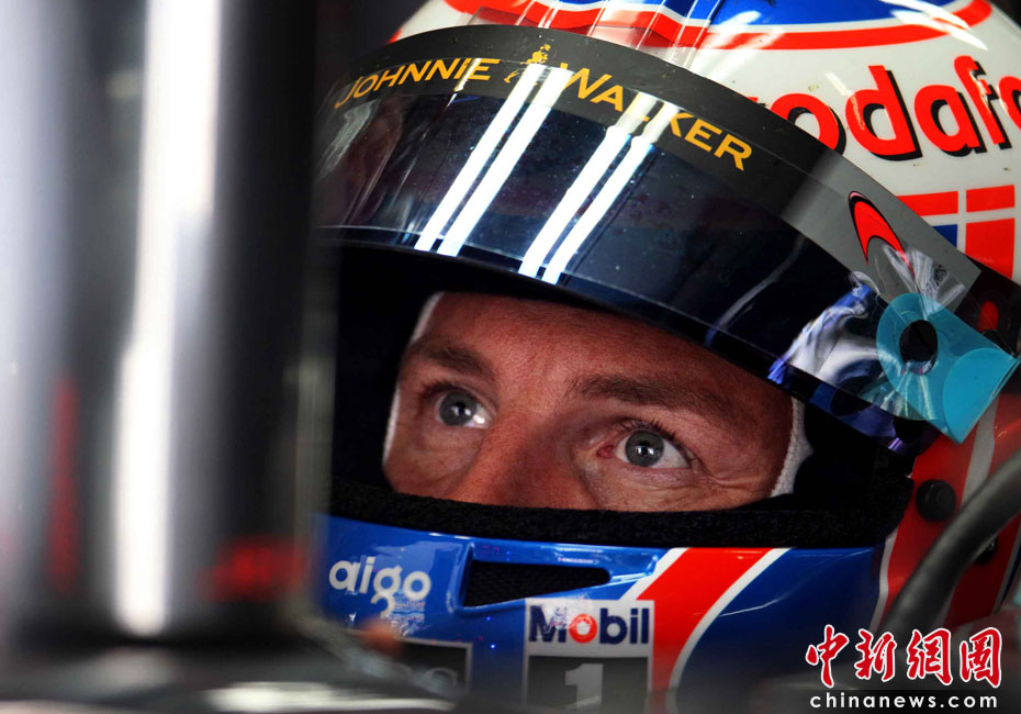 4月16日,2010國際汽聯(lián)F1世界錦標賽上海站在上海國際賽車場開始車手第一、第二次練習賽。圖為代表邁凱輪車隊出戰(zhàn)的英國車手巴頓。中新社記者 任晨鳴 攝