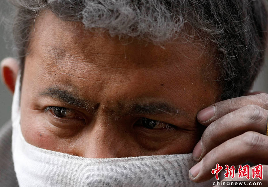 2010年4月16日,青海玉樹藏族自治州玉樹縣結(jié)古鎮(zhèn)一所中學(xué)的震災(zāi)救援現(xiàn)場(chǎng),救援人員的頭發(fā)、眉毛都落滿塵土。中新社發(fā) 盛佳鵬 攝