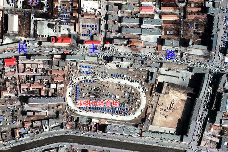 利用對(duì)地觀測(cè)中心2010年4月16日獲取的高分辨率航空遙感數(shù)據(jù),提取出玉樹(shù)州結(jié)古鎮(zhèn)城區(qū)范圍內(nèi)地震破壞最嚴(yán)重或典型地區(qū),使之與GoogleEarth中相應(yīng)位置的震前遙感衛(wèi)星數(shù)據(jù)進(jìn)行對(duì)比,直觀展現(xiàn)結(jié)古鎮(zhèn)在此次地震中的受影響程度。圖片來(lái)源:中國(guó)科學(xué)院