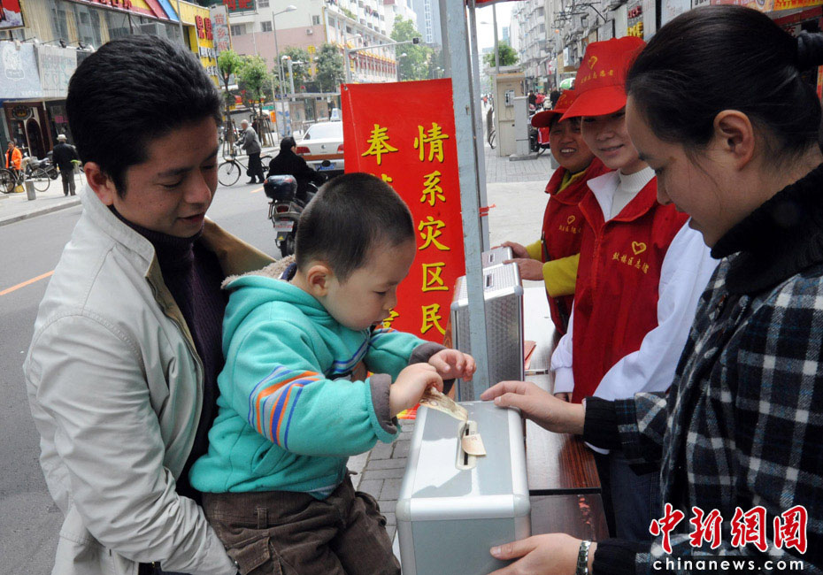 4月17日,一名兒童在家長(zhǎng)的帶領(lǐng)下來(lái)到福州市區(qū)設(shè)立的捐款箱向青海省玉樹地震災(zāi)區(qū)捐款。當(dāng)日是周六假日,不少福州市民紛紛前往由福建省紅十字會(huì)、福州市紅十字會(huì)、福建慈善總會(huì)等在街頭設(shè)立的捐助點(diǎn),踴躍向青海省玉樹地震災(zāi)捐款。中新社發(fā) 劉可耕 攝
