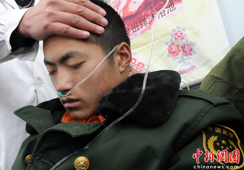 4月18日清晨,玉樹昨夜寒風(fēng)冰雹使地震災(zāi)區(qū)雪上加霜。部分救援人員出現(xiàn)嚴(yán)重高原反應(yīng),準(zhǔn)備搭乘中國(guó)空軍重型運(yùn)輸機(jī)撤回“天府之國(guó)”成都。中新社發(fā) 賈國(guó)榮 攝