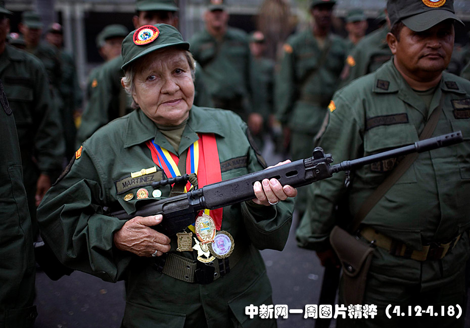 4月13日周二是委內(nèi)瑞拉的“民兵日”,一位老民兵手持步槍在首都加拉加斯參加紀念活動?偨y(tǒng)查韋斯當天發(fā)表講話,以此紀念他在八年前被政變短暫推翻后重新執(zhí)政。