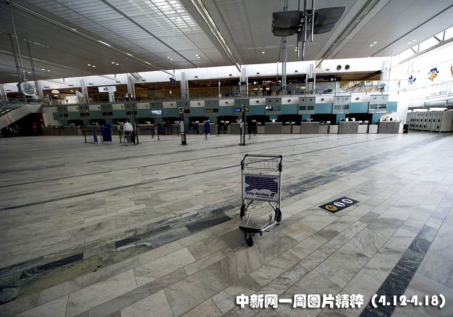 瑞典一機(jī)場(chǎng)大廳辦理登機(jī)手續(xù)的窗口前空無(wú)一人,此前冰島火山噴發(fā)產(chǎn)生的火山灰導(dǎo)致歐洲多個(gè)機(jī)場(chǎng)被迫關(guān)閉。