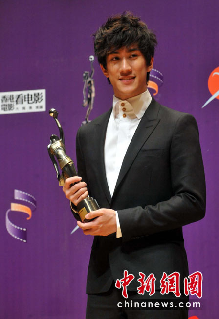 4月18日晚,“第二十九屆香港電影金像獎”頒獎典禮在香港文化中心大劇院隆重舉行,新晉演員李治廷憑演出電影“歲月神偷”奪得最佳新演員獎項。中新社發(fā) 鄧慶樂 攝