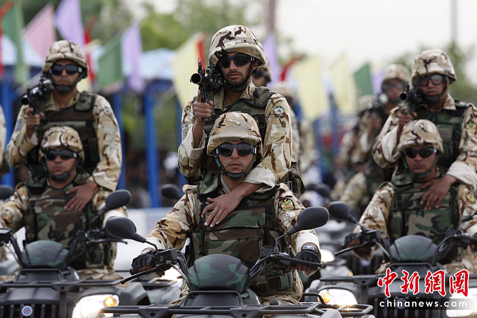 4月18日,伊朗德黑蘭舉行伊朗建軍節(jié)閱兵式。伊朗在閱兵式上展出了“力量”、“流星”和“泥石”等地對(duì)地導(dǎo)彈。圖片來(lái)源:中國(guó)新聞網(wǎng)