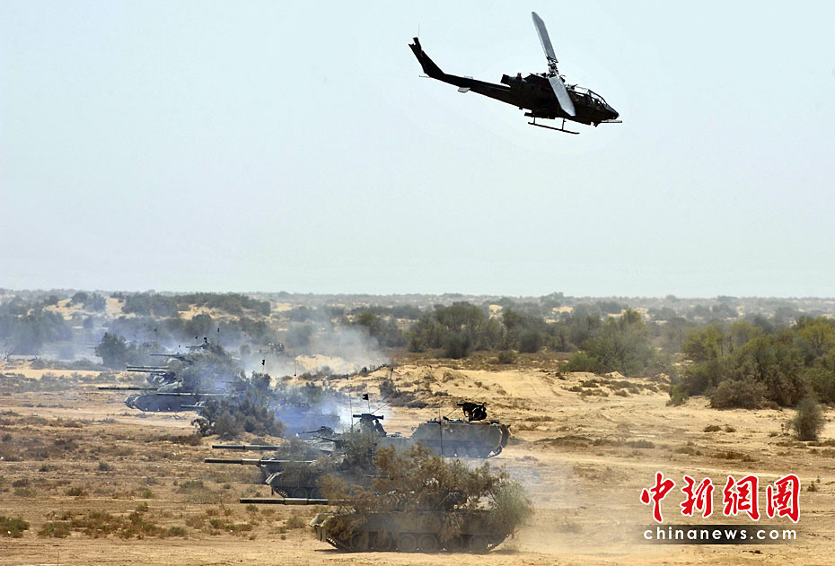 巴基斯坦軍隊4月18日出動戰(zhàn)機、坦克和重型火炮,在靠近印度邊界的東部沙漠地區(qū)舉行“新決心—3”軍事演習(xí)。圖片來源:中國新聞網(wǎng)