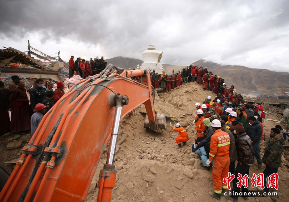 4月20日,玉樹(shù)震后第六天,青海消防總隊(duì)海西消防救援隊(duì)的官兵沒(méi)有放棄對(duì)幸存者的搜尋,經(jīng)過(guò)7個(gè)多小時(shí)的努力扎西大同村未發(fā)現(xiàn)生命跡象。圖為消防官兵仍未放棄生命搜尋。中新社發(fā) 劉忠俊 攝