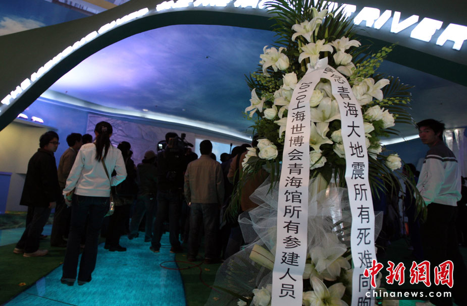 4月21日10點,上海世博青海館舉行儀式哀悼玉樹地震遇難者。當(dāng)日,全國舉行哀悼活動,深切哀悼青海玉樹地震遇難同胞。中新社發(fā) 湯彥俊 攝
