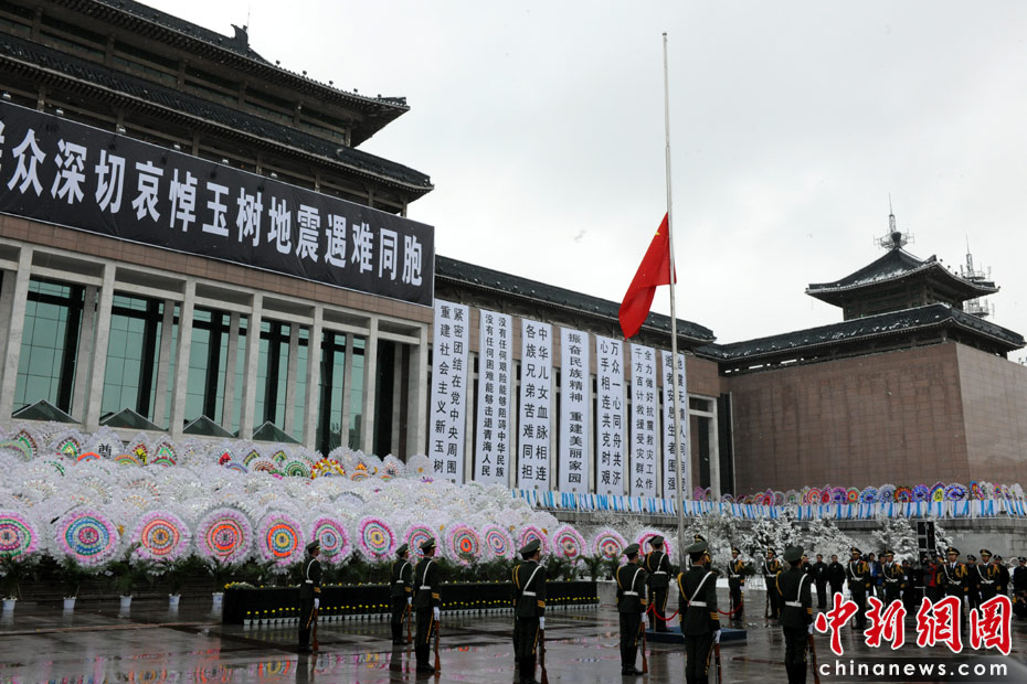 21日上午9時(shí)許,西寧各界民眾冒雪陸續(xù)來到該市最大的廣場——新寧廣場,悼念玉樹地震遇難同胞。中新社記者 符永康 攝