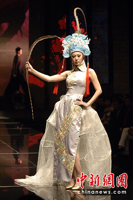 4月20日晚,首屆海西國(guó)際時(shí)裝周在福建石獅閉幕,本屆時(shí)裝周吸引了來自海峽兩岸的紡織服裝界企業(yè)家和知名服裝設(shè)計(jì)師。期間舉辦了12場(chǎng)時(shí)裝品牌和設(shè)計(jì)師作品動(dòng)態(tài)發(fā)布會(huì)。圖為模特展示古今潮流結(jié)合的服裝。王東明 攝