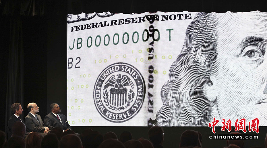 4月21日,美國財(cái)政部和美聯(lián)儲(chǔ)共同發(fā)布新版100美元面值的紙幣票樣。此次發(fā)行新版百元美鈔旨在防范假鈔,同時(shí),老版美元仍將繼續(xù)流通。圖片來源:中國新聞網(wǎng)