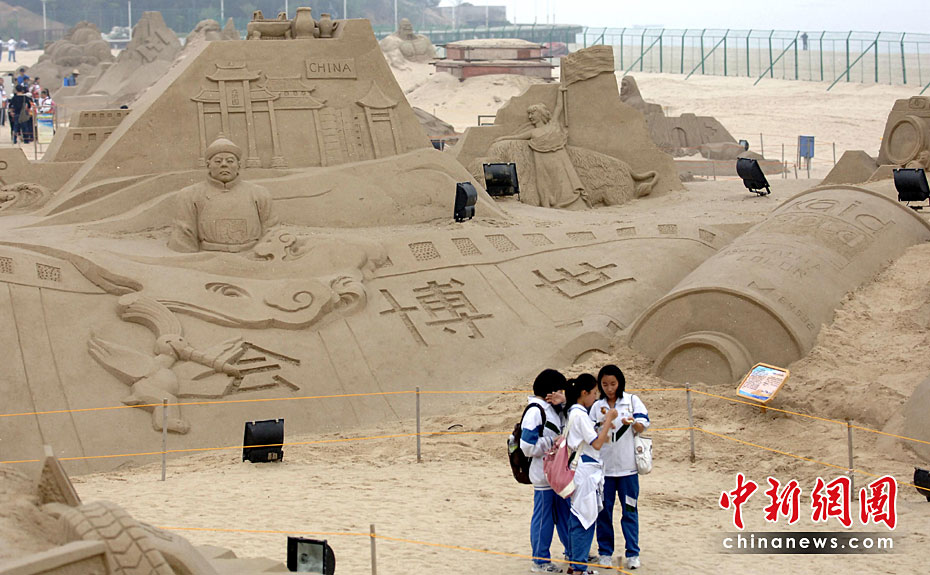 第三屆廈門(mén)觀音山沙雕文化公園于4月22日在廈門(mén)觀音山黃金沙灘投入試運(yùn)營(yíng)。本屆沙雕文化公園將以“暢游歷史”及“世博文化”為主題,共匯集70余座沙雕作品,規(guī)模繼續(xù)在亞洲稱雄。本次2010年觀音山沙雕文化公園將分為六大區(qū)域,分別是歷史主題區(qū)、世博專區(qū)、海洋文化區(qū)、競(jìng)賽區(qū)、DIY體驗(yàn)區(qū)和休閑配套區(qū)。尤以世博專區(qū)和歷史主題區(qū)為展示重點(diǎn)。王東明 攝