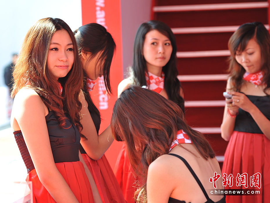 “第十一屆北京國際車展”場內(nèi)車模爭奇斗艷,另類模特也值得人們關(guān)注。中新網(wǎng)記者 金碩 攝