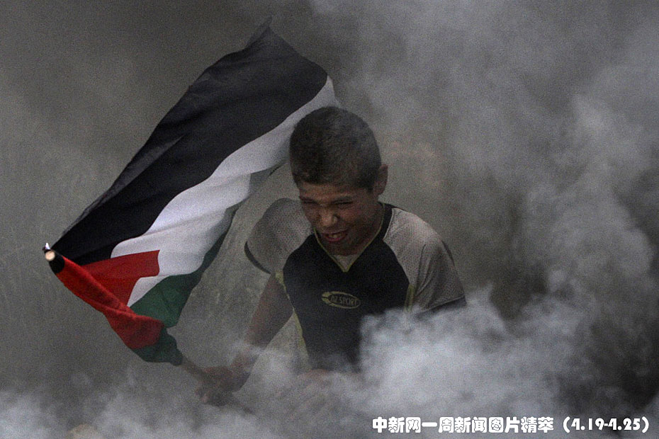 周五(23日),巴勒斯坦民眾手舉國旗抗議猶太定居者。