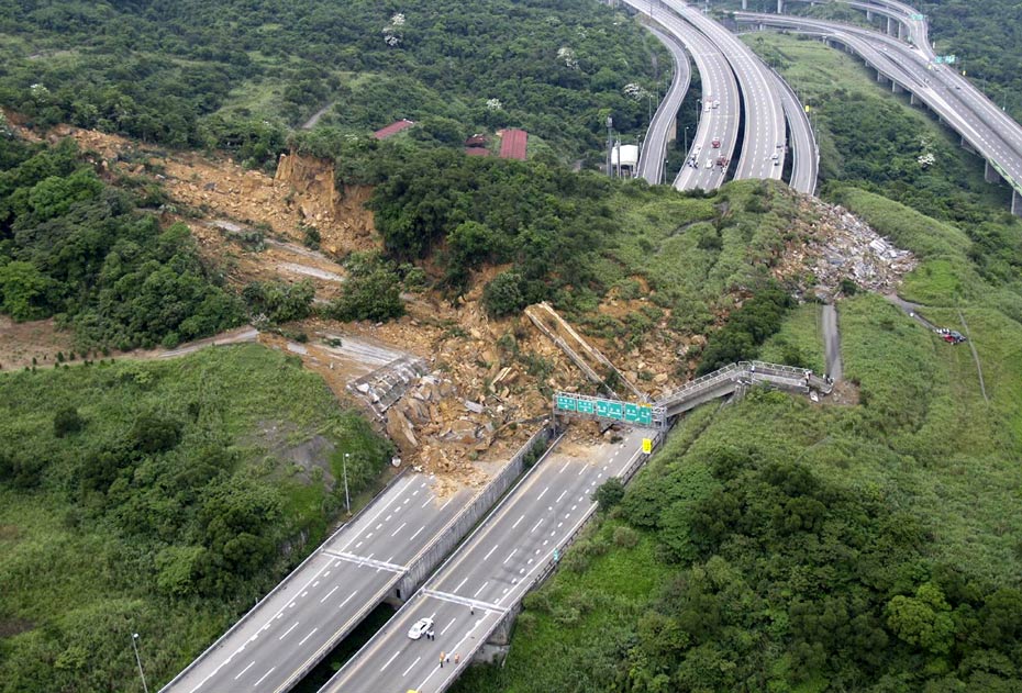 4月25日, 臺灣一條交通要道、“北二高”基隆段發(fā)生山崩意外,傾瀉而下的土石壓垮一座高架橋,并覆蓋道路約200米,據傳有人車被埋。(圖片來源:“中央社”)。