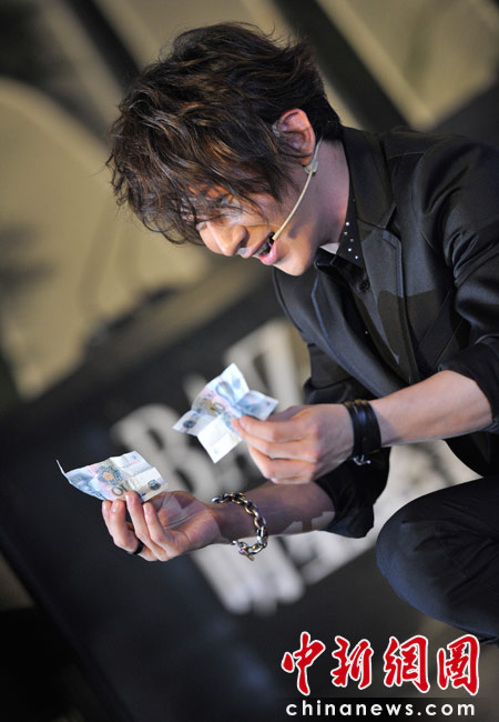 4月25日,由《時尚芭莎》雜志社主辦的第8屆“BAZAAR明星慈善夜”活動在上海舉行,圖為劉謙為現(xiàn)場嘉賓表演精彩炫目的魔術。 中新網(wǎng)記者 金碩 攝
