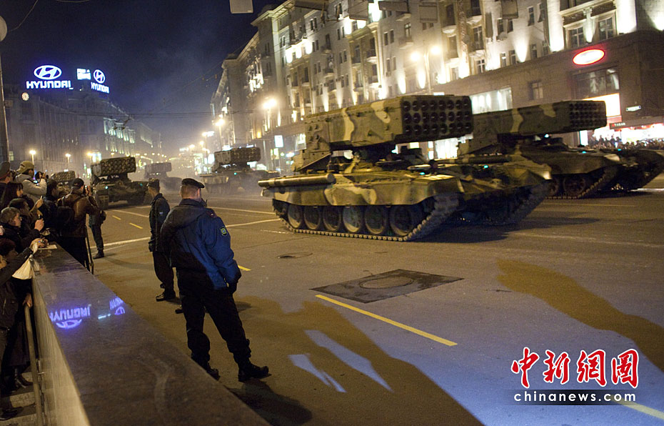 此次紅場閱兵包括兩部分內(nèi)容:歷史部分和現(xiàn)代部分。歷史部分由身穿衛(wèi)國戰(zhàn)爭時期軍服的士兵在鵝卵石道上進行,同時還會有9輛T-34坦克和8輛SU-100自行火炮,F(xiàn)代部分由13輛老虎裝甲車、BTR-80裝甲車、BMP-3步兵戰(zhàn)車、T-90A坦克和S-400防空系統(tǒng)等。圖片來源:中國新聞網(wǎng)