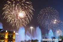 2010年4月27日,上海世博會開幕式彩排順利進行。圖為世博園內(nèi)中軸線上美麗的世博。卞赟 攝