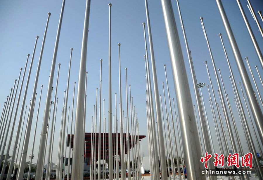 4月29日,中國上海市2010年世博會(huì)旗林升旗儀式現(xiàn)場(chǎng)準(zhǔn)備就緒。許康平 攝(CFP)