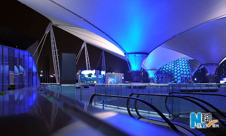 靜待開幕的世博園沉浸在一片暮色中,流光溢彩,給人無限遐想。從外灘到世博園,“夜”上海不斷延伸,讓人激情跳躍。圖片來源:新華網(wǎng)孫巍攝