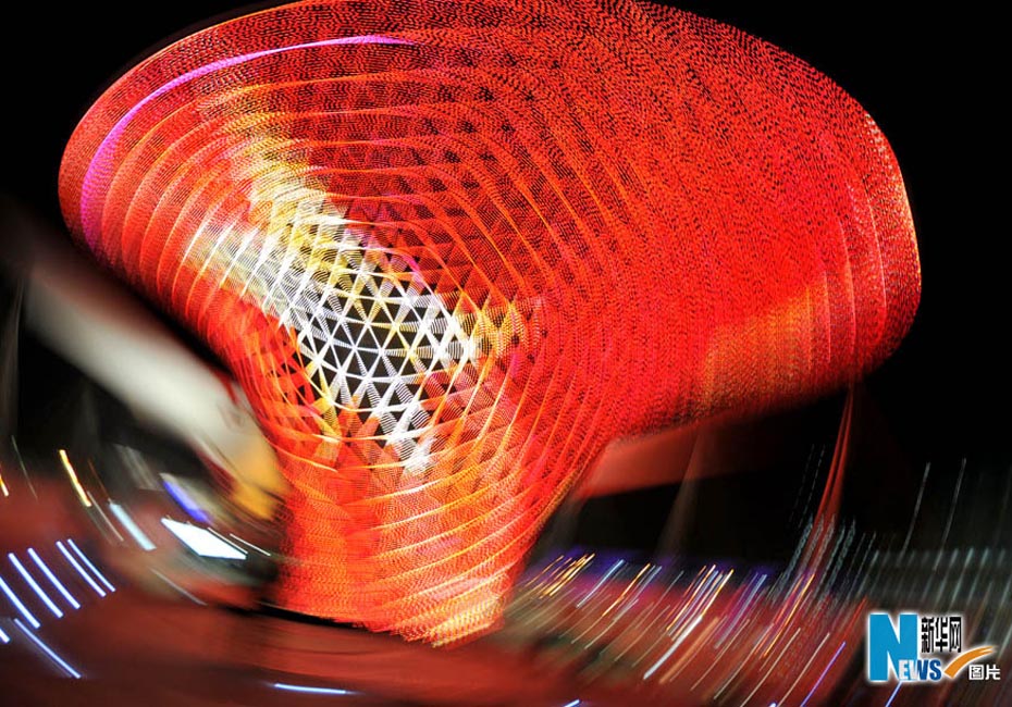 夜色下的世博園,迷離而夢(mèng)幻。圖為世博軸陽(yáng)光谷。圖片來源:新華網(wǎng) 郭毅攝