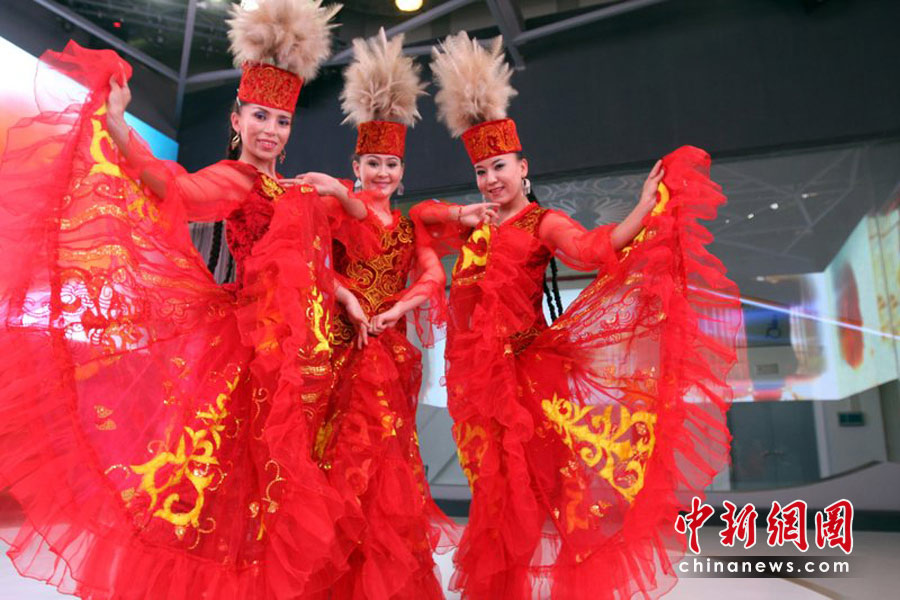 4月30日晚,舉世矚目的上海世博會開幕式將在黃浦江畔世博園區(qū)舉行。圖為4月30日,來自新疆阿勒泰的哈薩克族舞蹈演員正在世博園區(qū)新疆展館緊張排練準備參加世博會開幕演出。張秀科 攝