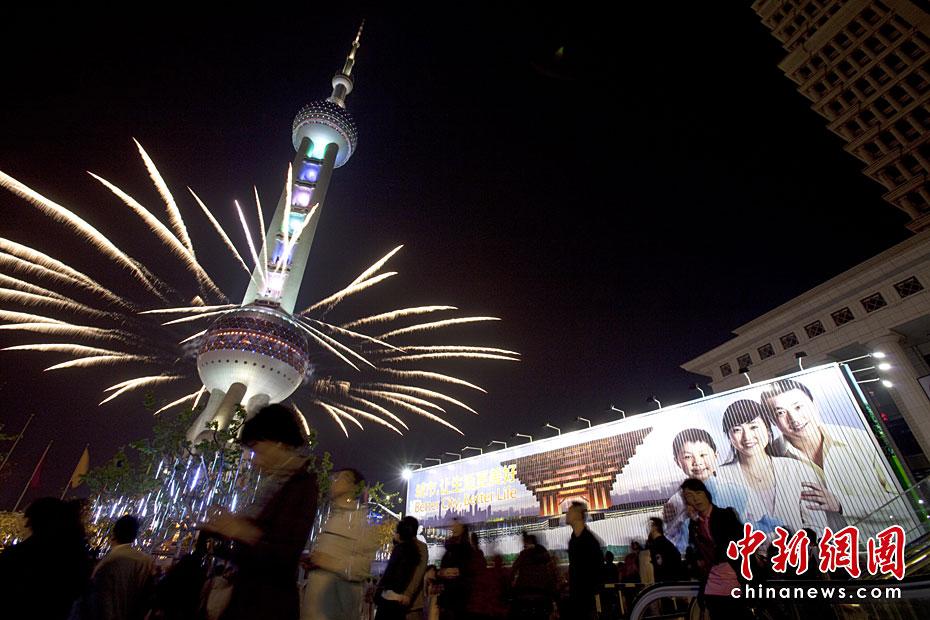 4月30日晚,2010年上海世博會(huì)開(kāi)幕式在上海世博園世博文化中心舉行。21時(shí)28分,世博會(huì)焰火燈光表演開(kāi)始。黃浦江兩岸綿延3.28公里同時(shí)奏響火樹(shù)銀花不夜天的華彩世博樂(lè)章。圖片來(lái)源:中國(guó)新聞網(wǎng)