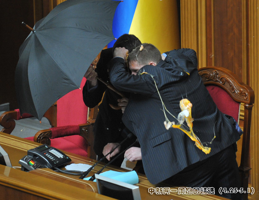 4月27日,基輔,烏克蘭議會就俄羅斯黑海艦隊(duì)駐扎問題進(jìn)行討論時(shí)出現(xiàn)混亂,數(shù)千人在議會外示威,會場內(nèi)有人投擲煙霧彈和雞蛋,大廳內(nèi)煙霧彌漫,場面一度混亂。圖片來源:中國新聞網(wǎng)>>點(diǎn)擊觀看詳細(xì)內(nèi)容