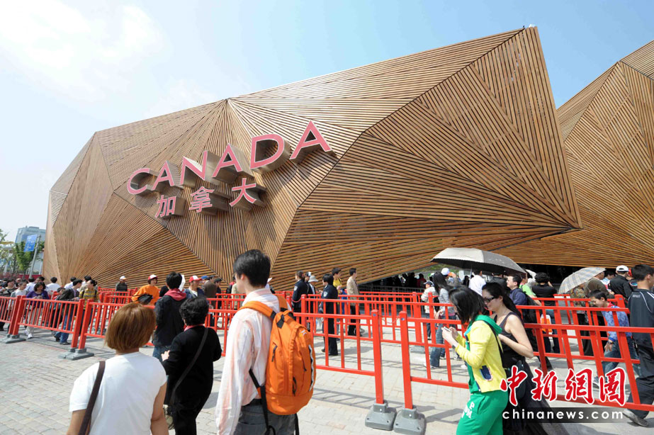 5月1日,上海世博會正式開園迎客,首批游客入園參觀。圖為數(shù)以萬計(jì)的海內(nèi)外觀眾陸續(xù)步入加拿大館參觀。中新社發(fā) 陳文 攝