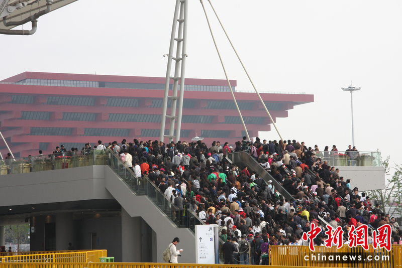 5月1日,上海世博會正式開園迎客,首批游客入園參觀。圖為上海世博會開園第一天。在入園6號口約有10萬人等待入口。宓家峰 攝