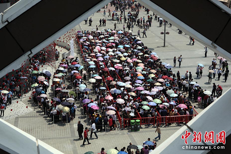 5月1日,2010上海世博園正式開園第一天,參觀者從浦東、浦西10多個(gè)出入口進(jìn)入園區(qū),世博園區(qū)內(nèi)游人如潮。圖片來(lái)源:中國(guó)新聞網(wǎng)
