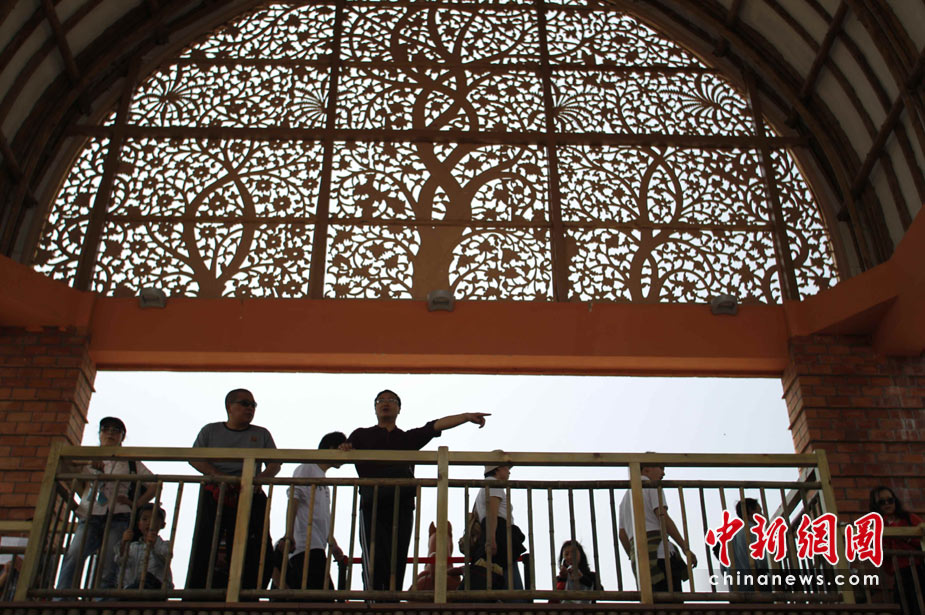 5月2日,觀眾在上海世博會(huì)印度館參觀。電影《阿凡達(dá)》中神秘的“生命之樹”在印度館現(xiàn)身,拱形大門上鑲嵌著銅質(zhì)的“生命之樹”圖案,中新社發(fā) 蘇丹 攝