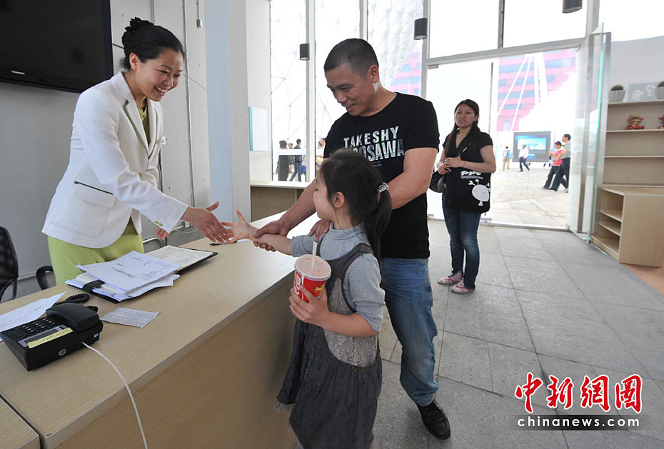 5月2日清晨,7歲的林姝彤小朋友剛跟著伯伯嬸嬸進入上海世博園,就在亂哄哄的人流中走丟了,志愿者把她領(lǐng)到走失兒童認領(lǐng)處。服務(wù)小姐在詢問她的姓名等關(guān)鍵詞之后,會立即廣播尋人啟示。結(jié)果,她很快就和親人團圓了。中新社記者 賈國榮 攝