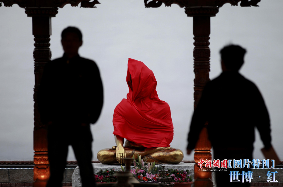 紅色象征著熱量與活力,紅色也象征著興奮與激情,在世博園區(qū)內游覽,總會有一抹濃艷的紅色闖入到記者鏡頭之中,讓世博變得更加火辣。圖為尼泊爾館的佛像。中新社記者 盛佳鵬 攝