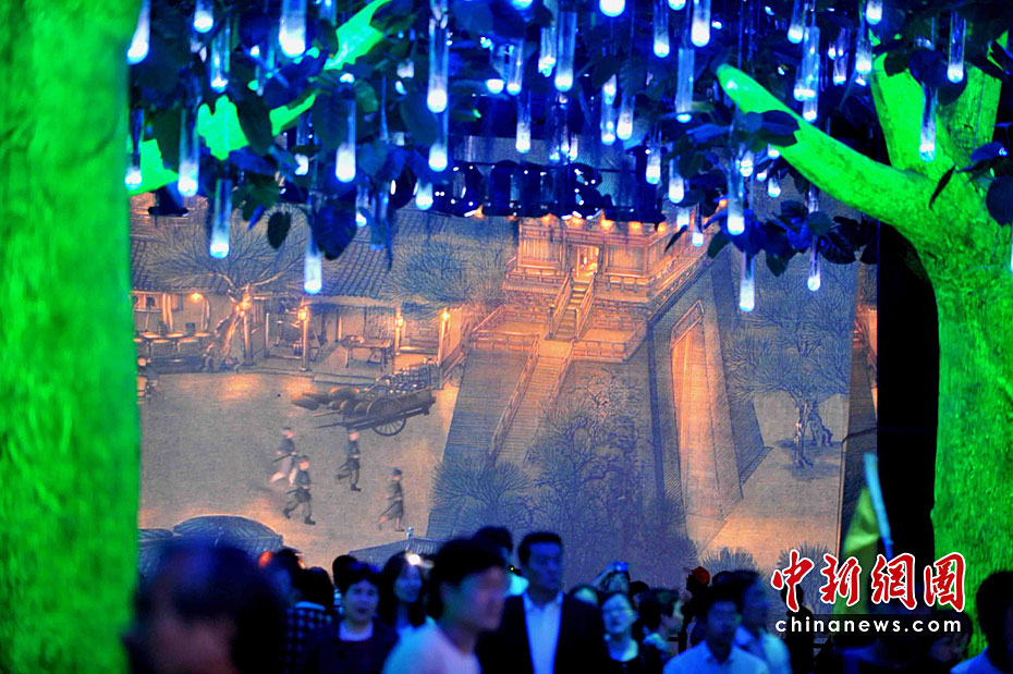 5月2日,中外觀眾依然最熱捧上海世博會(huì)中國(guó)館的“鎮(zhèn)館之寶”——巨幅放大電子動(dòng)態(tài)版的北宋畫(huà)家張擇端名作《清明上河圖》。此世博版的《清明上河圖》高6.3米,長(zhǎng)130余米,約是原圖的30倍,需要12臺(tái)電影級(jí)的投影儀同時(shí)工作。整個(gè)活動(dòng)畫(huà)面以4分鐘為一個(gè)周期,盡展宋朝盛世的都市日夜風(fēng)情。中新社記者 賈國(guó)榮 攝