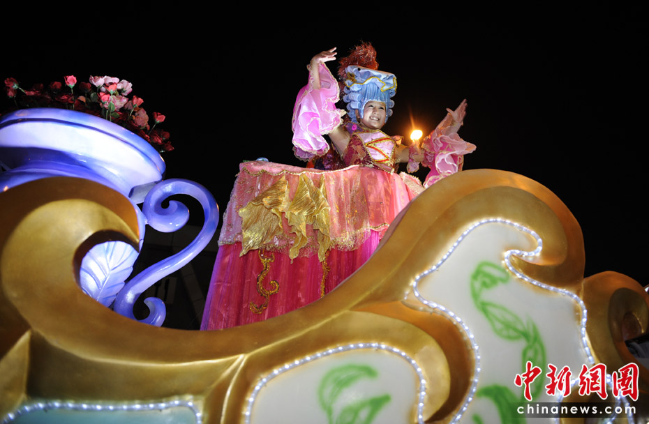 5月2日晚,由一輛輛充滿異域風情的花車和身著盛裝的表演者組成的“歡樂盛裝大巡游”在世博園區(qū)舉行。中新網記者 王紅綱 攝