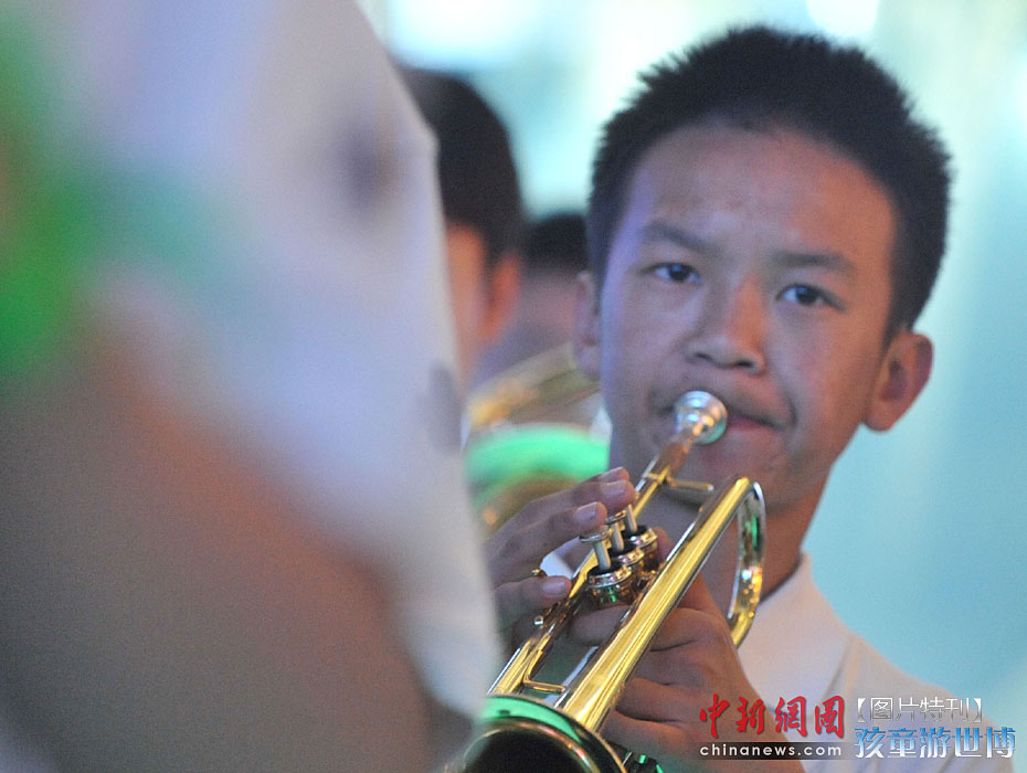 隨著上海世博園正式開園,各大展館迎來了八方游客,其中不乏一些小孩子也來上海感受世博盛況。中新社發(fā) 賈國榮 攝