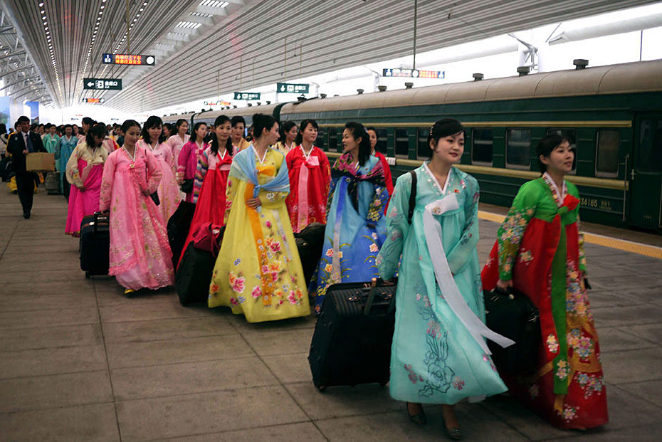 5月2日,載著198名朝鮮紅樓夢劇組演員的專列駛?cè)氲|口岸。由朝鮮國家級藝術(shù)團-血海歌劇團創(chuàng)作的歌舞劇《紅樓夢》將于5月6日至9日登陸北京電視臺大劇院,這個超大演員陣容亦創(chuàng)下近年來華國外演出人數(shù)之最。圖片來源:新華網(wǎng)