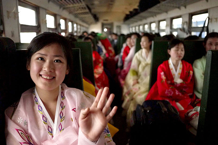 5月2日,載著198名朝鮮紅樓夢劇組演員的專列駛入丹東口岸。由朝鮮國家級藝術團-血海歌劇團創(chuàng)作的歌舞劇《紅樓夢》將于5月6日至9日登陸北京電視臺大劇院,這個超大演員陣容亦創(chuàng)下近年來華國外演出人數(shù)之最。圖片來源:新華網(wǎng)